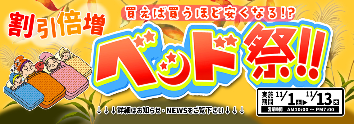 最新チラシ【11/1(土)~割引倍増ベッド祭‼】を掲載しました